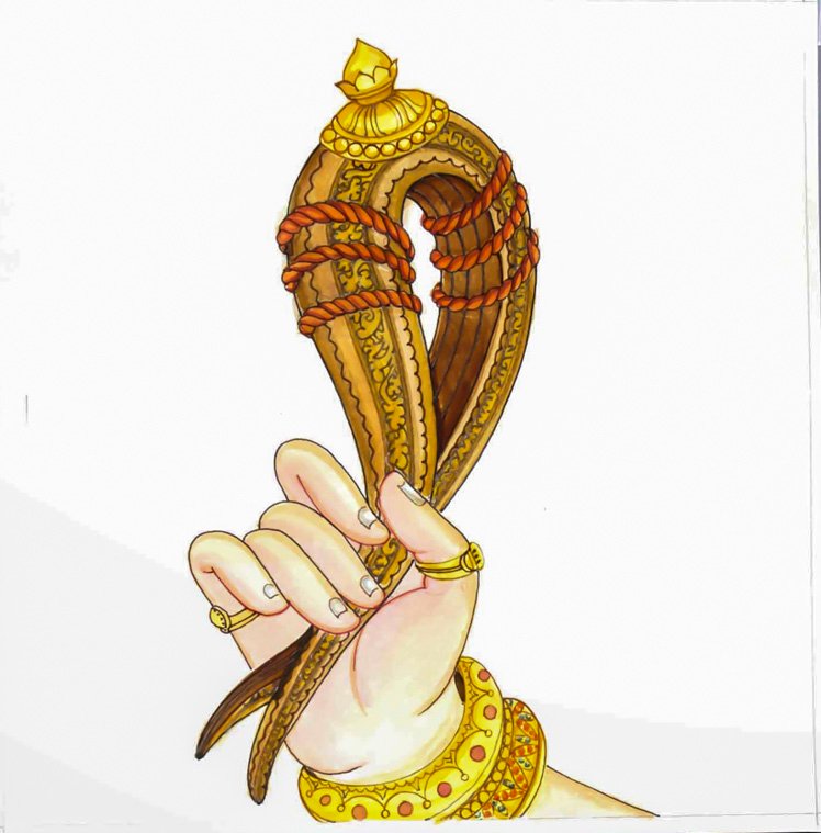 Monk's EarringThe traditional earrings, kundala, are shown here.