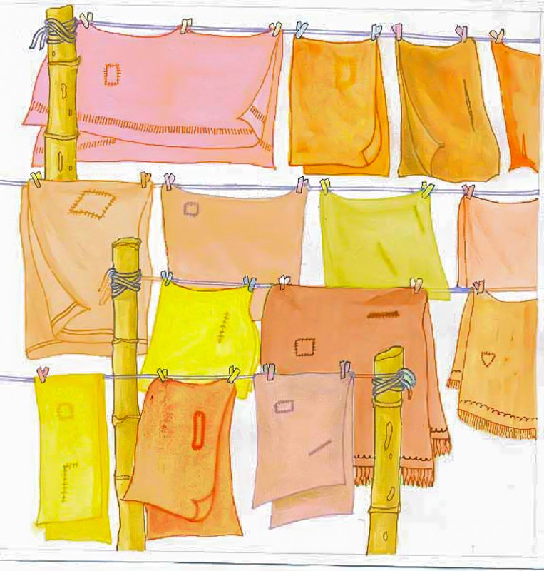 Monk's RobesHere we see the monks’ clothesline, with their khadi-kavi robes, hand spun and hand loomed, drying in the Hawaiian sun.