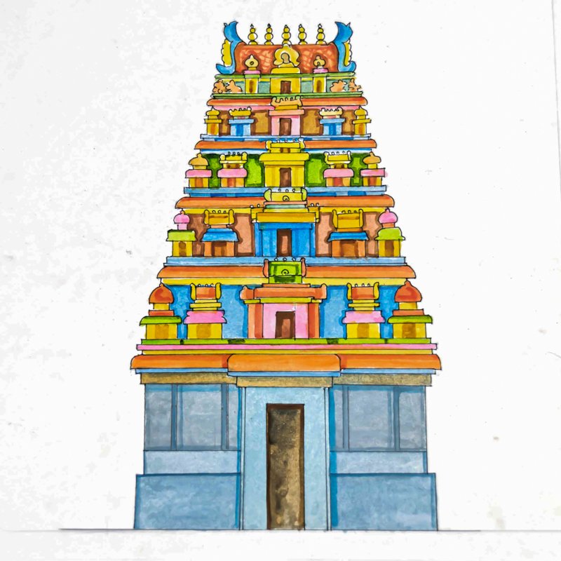 GopuramThis depicts a Gopuram, the monumental tower, usually ornate, at the entrance of a Hindu temple, especially prominent in South Indian temples.