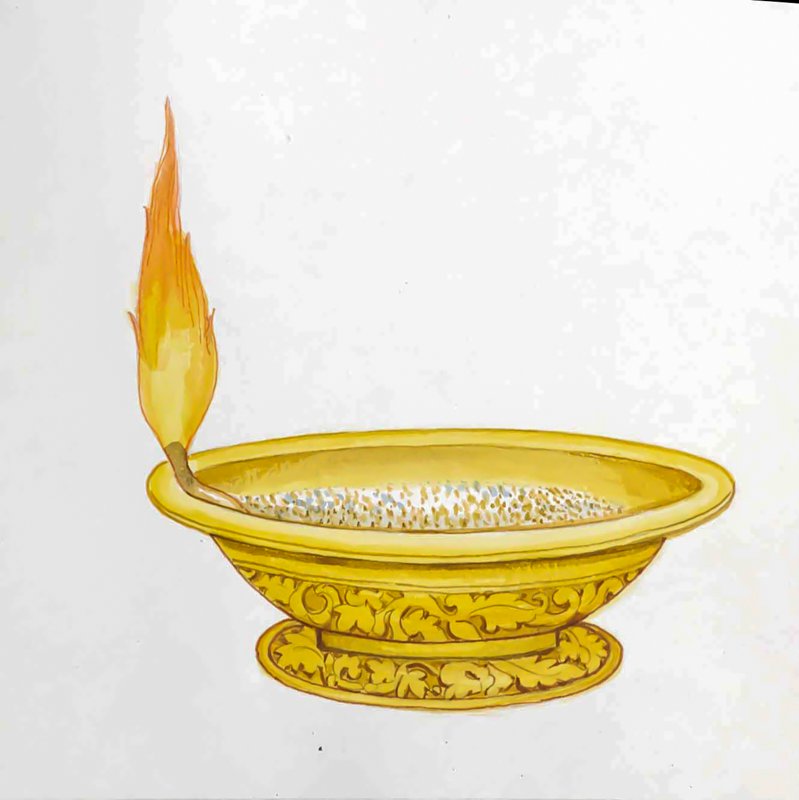 DipaThis is the dipa, the small oil lamp, often made of clay. The dipa is an auspicious offering, especially during festivals like Dipavali.