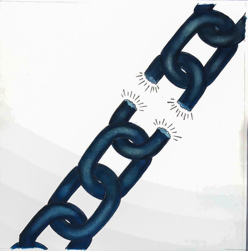 Moksha, LiberationThe broken chain represents moksha, which is Sanskrit for liberation, release from transmigration (samsara), the round of births and deaths. This release occurs after karma has been resolved and nirvikalpa samadhi—realization of the Self, Parasiva—has been attained. Synonymous with mukti.
