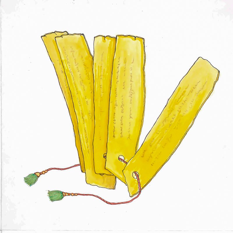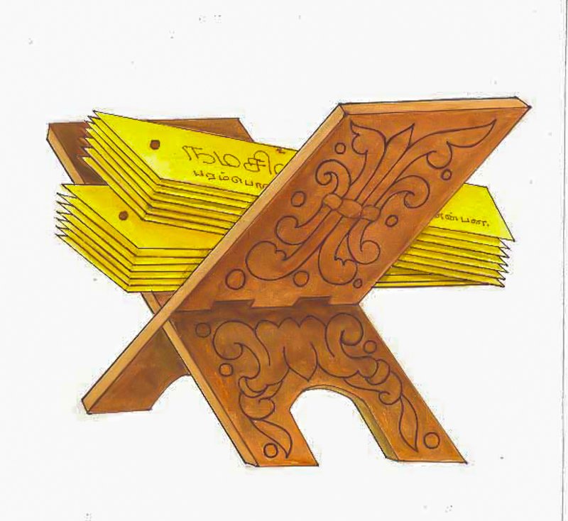 Sama VedaSama Veda or “Song of wisdom” is the third of the four Vedas, represented here as ola leaves on which chants are scribed. Ninety percent of its 1,875 stanzas are derived from the Rig Veda. It is a collection of hymns specially arranged and notated for chanting with a distinctive melody and cadence by the Udgata priests during yajna, fire ceremony, together with stanzas from the Yajur Veda. This Veda represents the oldest known form of Indian music.