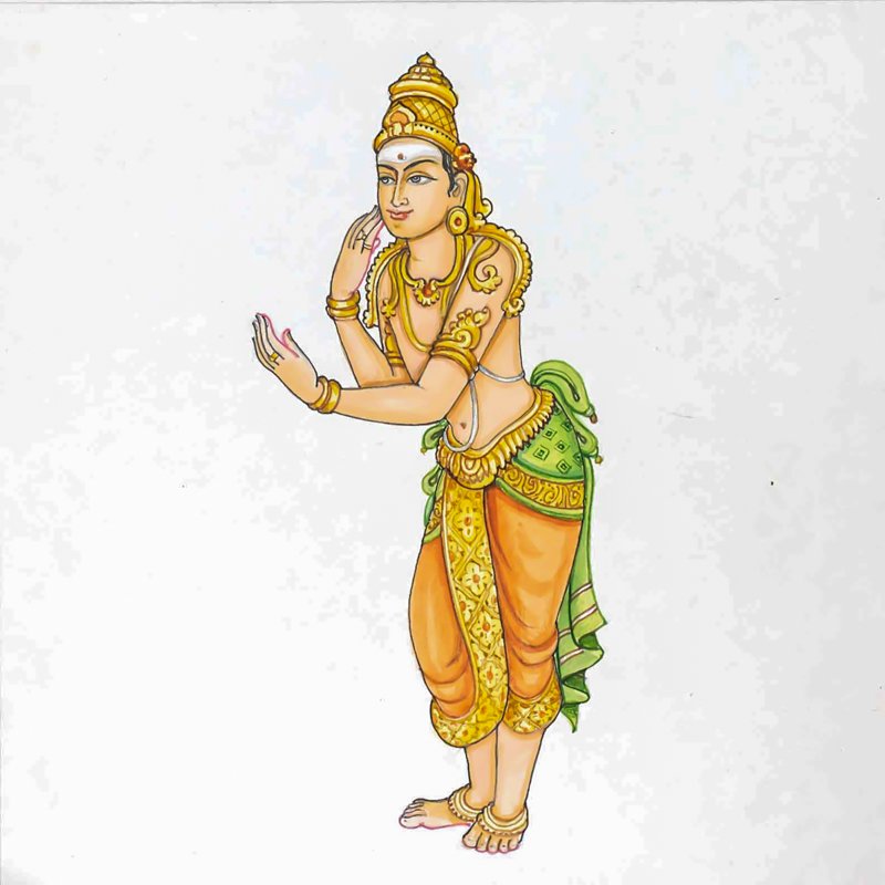 DvajapalakThis is one of the dvaja palikas who guard the entrance to a temple sanctum. His hand is indicating God Siva is waiting within the innermost sanctum, and is inviting pilgrims to draw closer to God.